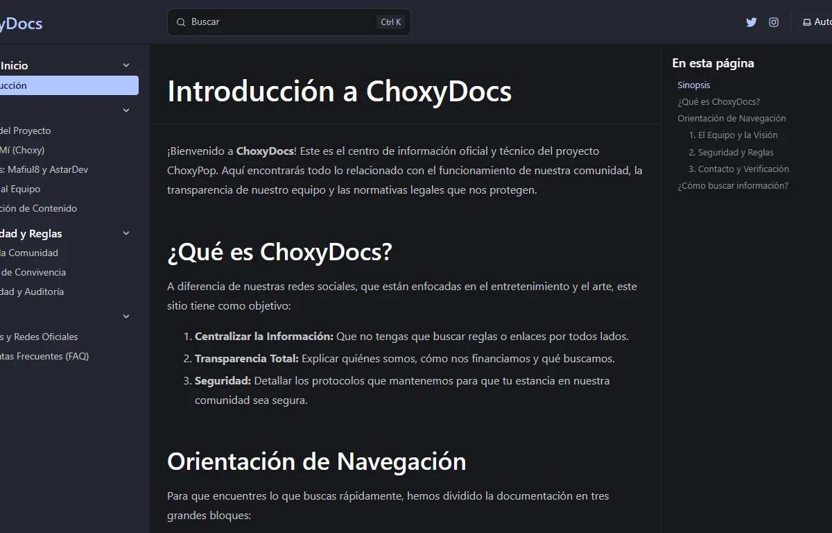 La documentación es lo más importante para ayudar a la gente que no tiene conocimiento sobre algo especifico, por eso cree “ChoxyDocs”, un sitio web destinado a documentación oficial sobre mí y el equipo, aparte de guias, reglas, respuestas a preguntas frecuentes, entre otros.